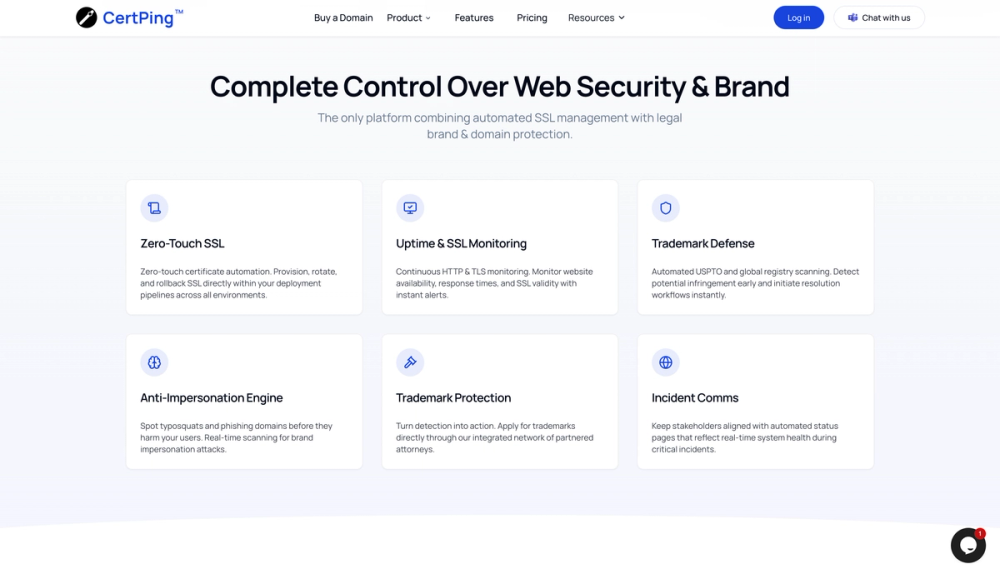 The only AI-Powered Domain Security Platform merging automated SSL management with proactive domain & trademark monitoring. Prevent downtime and crush impersonation in a single workflow. The only platform combining automated SSL management with legal brand & domain protection. Stop managing certificates manually. We handle the entire lifecycle-validation, issuance, and deployment-synced directly with your cloud load balancers and stores.