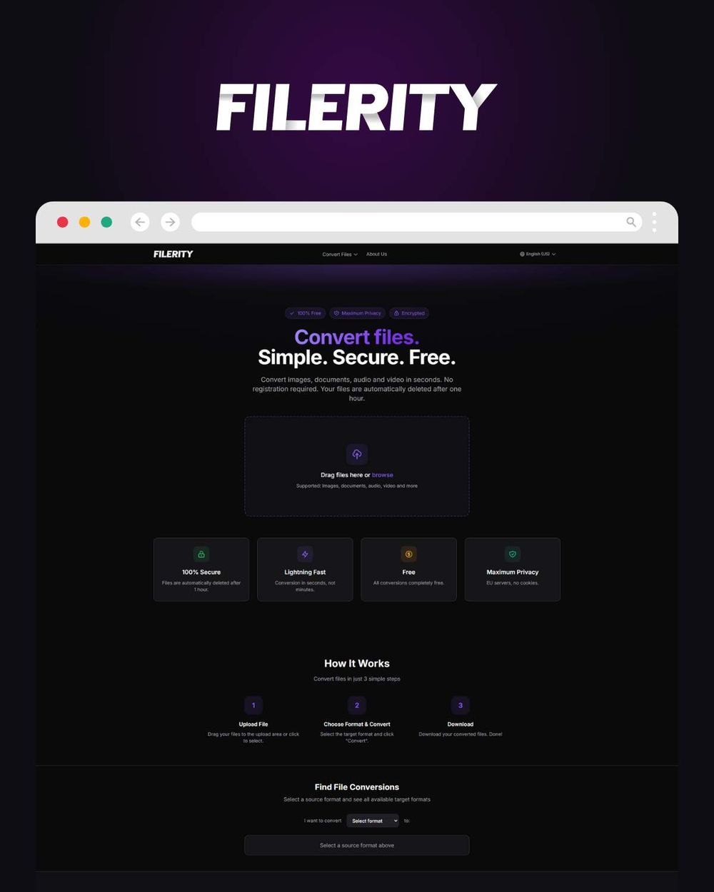 Filerity offers a complimentary web-based utility for file transformation, enabling you to switch formats among hundreds of options right from your web browser. There's no need for software downloads, account creation, or intricate configuration steps.