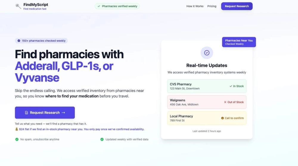 Find My Script is especially helpful for medications affected by ongoing shortages, including ADHD treatments and GLP-1 medications. Our goal is to save patients time, reduce stress, and make the prescription process easier during periods of limited supply.
