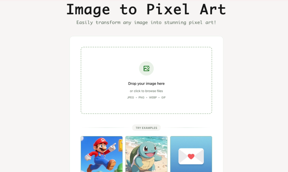 Imagepixelart lets you turn all kinds of images into retro pixel art with one click for free. You can also adjust style parameters, and local processing makes it super convenient.