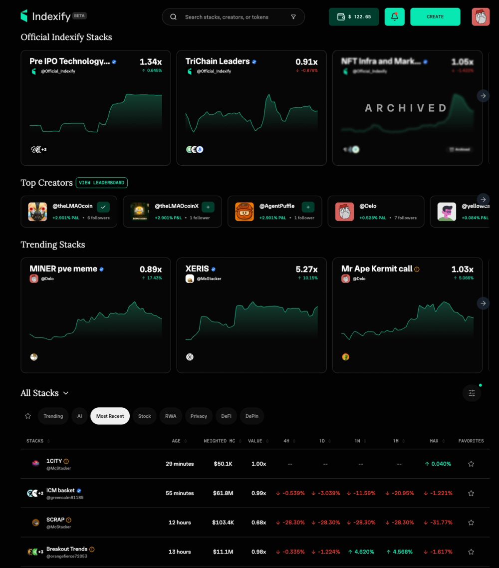 Indexify is the social terminal for crypto portfolios on Solana. The platform transforms market ideas into transparent, on-chain portfolios called Stacks that anyone can create, follow, or trade.