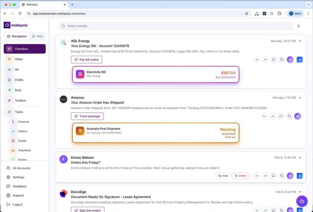 It manages your personal finances, events, and shipments with a built-in task manager that tracks deliveries with a full timeline of events. It automatically suggests and writes replies in your voice.